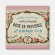 Vintages Etikett mit pinken und lila Rose und verziertes Design. " Veritables Parfums Aux Fleurs", "Essence Concentree Rose de Provance" J Giraud Fils.