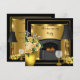 Party zur Wohnungsaufwärmung. Neues Haus Party, neue Zuhause, Vintage Black Gold Rose Décor, Wein Glas, Gold Lampe und Vase Elegant Geburtstagsparty Verziert Gold.