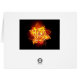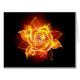 Blühende Rose aus Feuer und Flamme auf schwarzem Hintergrund.