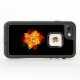 Blühende Rose aus Feuer und Flamme auf schwarzem Hintergrund.