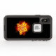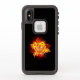Blühende Rose aus Feuer und Flamme auf schwarzem Hintergrund.