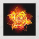 Blühende Rose aus Feuer und Flamme auf schwarzem Hintergrund.