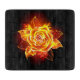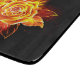 Blühende Rose aus Feuer und Flamme auf schwarzem Hintergrund.
