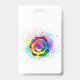 Große, blühende Rose mit Regenbogenblüten auf weißem Hintergrund, überstrichen mit farbenfrohen, hellen Farbtupfern. 3d