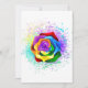 Große, blühende Rose mit Regenbogenblüten auf weißem Hintergrund, überstrichen mit farbenfrohen, hellen Farbtupfern. 3d