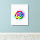 Große, blühende Rose mit Regenbogenblüten auf weißem Hintergrund, überstrichen mit farbenfrohen, hellen Farbtupfern. 3d