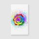 Große, blühende Rose mit Regenbogenblüten auf weißem Hintergrund, überstrichen mit farbenfrohen, hellen Farbtupfern. 3d