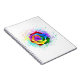 Große, blühende Rose mit Regenbogenblüten auf weißem Hintergrund, überstrichen mit farbenfrohen, hellen Farbtupfern. 3d