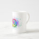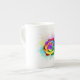 Große, blühende Rose mit Regenbogenblüten auf weißem Hintergrund, überstrichen mit farbenfrohen, hellen Farbtupfern. 3d