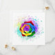 Große, blühende Rose mit Regenbogenblüten auf weißem Hintergrund, überstrichen mit farbenfrohen, hellen Farbtupfern. 3d