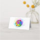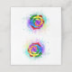 Große, blühende Rose mit Regenbogenblüten auf weißem Hintergrund, überstrichen mit farbenfrohen, hellen Farbtupfern. 3d