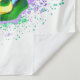 Große, blühende Rose mit Regenbogenblüten auf weißem Hintergrund, überstrichen mit farbenfrohen, hellen Farbtupfern. 3d