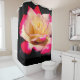 Dieser Duschvorhang hat eine schöne Rose, die darauf abgebildet ist.