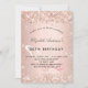 Für eine elegante 50. Geburtstagsfeier (oder jedes Alter). Eine Rose goldener Hintergrund. Dekoriert mit Rose Gold Imitat Glitzer und einem großen Schmetterling. Personalisieren und fügen Sie einen Namen und Party-Details hinzu. Der Name wird mit einem handgeschriebenen Stilskript geschrieben