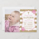 Rose et invitation de baptême de parties scintillantes d'or avec la photo faite sur commande. Baptême de fille. Première communion. Baptême. Dévouement d'enfant. Or et rayures blanches. Fleur florale rose. Pour davantage de personnalisation, cliquez sur svp la "personnaliser il" bouton et utilisez notre outil de conception pour modifier ce modèle.