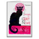 Carte de voeux française vintage rose et noire d'affiche de chat.