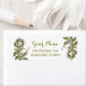 Étiquettes d'adresse de retour personnalisées avec des lettres de script et de bloc en faux or et rose élégant gravé en blanc et faux or.