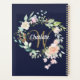 Joli planificateur monogramme, avec un joli nom de script blanc avec une initiale en or complaisante qui est encadrée par une délicate aquarelle rose fleurie sur un arrière - plan bleu marine. Personnalisez pour créer un cadeau spécial de conservation au trésor! Conçu par Thisisnotme©