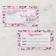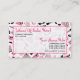 Un carte de visite de cosmetologist/salon comportant une conception d'arrière - plan se composant des illustrations des bourses, du rouge à lèvres, des bouteilles de parfum, des diamants roses, et des lunettes de soleil de plot réflectorisé. Personnalisez l'avant avec votre information de contact d'affaires. Employez de nouveau à écrivent l'information de rendez-vous.