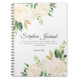 Eine personalisierte Christliche Schriftzeitschrift mit 2 wunderschönen Eckarrangements aus Elfenbein und cremefarbenen Rose und grünen Blätter, mit einer Touch von Imitaten Glitzer. Die Phrase "Scripture Journal" in dunkelgrauem, handgeschriebenem Schriftart ist in der Mitte, mit dem Bibelvers "Das Gras hält, die Blume verblasst, aber das Wort unseres Gottes steht für immer." Isaiah 40:8 NKJV darunter (die sich ändern kann). Personalisiert durch Hinzufügen eines Namens.