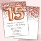 Rose Gold 15. Geburtstagsparty Einladung und Rose Gold elegante moderne 15. Geburtstagsfeier Einladung für ein 15-jähriges Mädchen mit modernem Drehbuch und lustigen Folienballons.