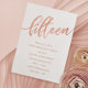 Rose Gold 15th Birthday Party Invitations : Joli or rose 15th anniversaire conception d'invitation de fête avec brillant rose or look "quinze" écrit en écriture manuscrite typographie. Le lettrage contemporain remplit les détails de la fête. [Notez que même si les éléments de cette conception seront imprimés pour ressembler à du papier d'aluminium, aucun papier d'aluminium ou encre métallique n'est utilisé pour créer les invitations - le papier d'or rose est un effet imprimé.]