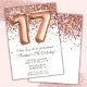 Rose Gold 17th Birthday Party Invitation et or rose élégant moderne 17th anniversaire invitation pour une fille de 17 ans avec écriture d'écriture moderne et des ballons de papier amusant.