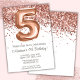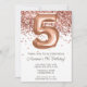 Rose Gold 5th Birthday Party Invitation et or rose élégant moderne 5th anniversaire invitation pour une fille de 5 ans avec écriture de script moderne et des ballons de papier amusant.