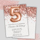 Rose Gold 5th Birthday Party Invitation et rose or élégant moderne 5th anniversaire invitation pour une fille de 5 ans avec écriture de script moderne et amusant ballons en feuille avec papier de texture imprimée arrière - plan.