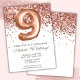 Rose Gold 9. Geburtstagsparty Einladung und Rose Gold elegante moderne 9. Geburtstagsfeier Einladung für ein 9-jähriges Mädchen mit modernem Drehbuch und lustigen Folienballons.