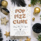 Einzigartige und trendige Silvesterabend-Party Einladungen mit dem "POP FIZZ CLINK" in Rose Goldballons auf einem Hintergrund aus rosa, goldfarbenen und schwarzen Konfetti. Personalisieren Sie mit Ihren Party-Details in modernen schwarzen Schriften. Die Einladungen kehren zu massivem Schwarz zurück.