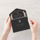 Erleben Sie zeitlose Eleganz mit dieser vom Himmelstil inspirierten Einladung mit Ihrem QR-Code! Mit einem strahlenden goldenen Bogen, zarten weißen Blume und strahlenden Sternen vor schwarzem Hintergrund Set dieses Design den Ton für ein anspruchsvolles Fest. Ideal für Hochzeiten, Galas und Meilensteine! Bitte beachten Sie, dass das Rose-Gold auf diesem Produkt KEINE reale Folie ist; es ist flach gedruckt.