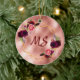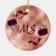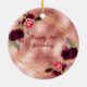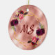 Eine dunkle Rose Gold Imitate metallisch aussehend Hintergrund. Mit einem geometrischen Rahmen in goldenen Imitaten und farbenfrohen Blume dekoriert, mit bordeauxfarbenen, rosa und vergoldeten Rose. Auf der Vorderseite: Personalisieren und fügen Sie ein Monogramm, Initialen. Zurück: der Text "Happy 21. Geburtstag" und Ihre Namen. Burgund farbiger Text. Perfekt als 21. (oder jedes Alter) Geburtstagsparty Dekoration, Gunst, Sake oder als Geschenk.