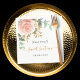 Ein schick weißer Hintergrund. Dekoriert mit einer Rose Gold und rot rosa Rose Blume, florale, grüne Eukalyptus Blätter, Sprigs, Grün und Imitat Goldsprigs. Personalisieren und Name und Datum. Schwarze und goldene Buchstaben