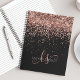 Glam Rose Gold Glitzer Elegant Monogram Notebook. Dieses schicke Notizbuch-Design mit elegantem goldglänzenden Glitzer in der Rose auf schwarzem Hintergrund ist einfach zu personalisieren. Das Design enthält Ihr handgeschriebenes Skriptmonogramm mit hübschen Wirbel und Ihrem Namen.