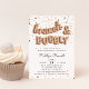 Les invitations uniques à la douche nuptiale comprennent un "brunch & bubbly" épelé dans des ballons d'or rose, sur un arrière - plan d'or rose, d'or et de confettis noirs. Personnalisez avec vos détails de brunch de douche nuptiale en lettres noires modernes. Les invitations se retournent vers le rose vif.