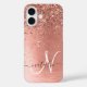 Rose Gold Brushed Metal Glitzer Monogram Name iPhone 16 Hülle