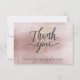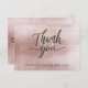 Rose Gold Business Dankeschön Card mit goldfarbenem Hintergrund, stylischer Kalligraphie und modernem Text. Die Rückseite der Karte hat eine Discount- und Social-Media-Meldungsvorlage.Bitte klicken Sie auf die Schaltfläche Personalisieren, um sie in Ihrem eigenen Text anzupassen.