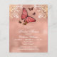 Rose Gold Butterfly Bläserblütendusche Einladungen mit einer Rose goldschimmerndem Hintergrund mit Schmetterlingen und verzierten Blumenakzenten mit Ihrer Bridal Dusche Einladung Informationen in der Mitte. Personalisieren Sie den Text in den Textfeldern, indem Sie ihn bearbeiten. Entwickelt für Sie von ©Evco Studio www.zazzle.com/store/evcostudio