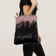 Individuell elegante und gürtelschwarze Tasche mit tropfenden Rose Gold Imitat Glitzer. Personalisieren Sie mit Ihrem Namen in einem stilvollen, trendigen Rose Gold Skript mit Swashes.