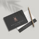 Elegantes Geschenkgutdesign zeigt Ihren Namen und/oder Firmennamen in weißer Schrift unter dem Scheren eines Stylisten in Imitaten Rose Goldfolie mit Blume, auf einem reichen kohlegrauen Hintergrund. Fügen Sie auf der Rückseite den gewünschten Gutscheinsatz und die Kontaktinformationen für Unternehmen hinzu. Eine schicke und elegante Wahl für Salons und Haarstylisten.
