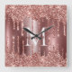 Rose Gold Glitter Drips Monogram Personalized Quadratische Wanduhr