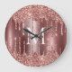 Rose Gold Glitter Drips Monogram Personalized Wall Große Wanduhr