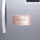 Ein eleganter, weiblicher und moderner Visitenkartenmagnet. Eine Rose gold metallisch aussehend, mit Rose Gold, rosa Imitat Glitzer Tropfen, Farbe Tropfen aussehen. Personalisieren Sie Ihren Namen, Text/Titel und Ihre Kontaktinformationen und fügen Sie diese hinzu. Schwarze Buchstaben. Der Name ist mit einem modernen und trendigen Handschrift geschrieben. Ideal für Unternehmerinnen, Berater, Geschäftsinhaber, Make-up Artists.