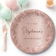 Rose Gold Glitzer Foil 90th Birthday Monogram Pappteller