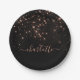 Erstellen Sie Ihre eigene personalisierte schwarze und Rose goldene Karo-Funkelpapier-Platte mit Ihrem benutzerdefinierten, modernen handgeschriebenen Skriptnamen.