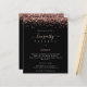Rose Gold Glitzer Hen Weekend Black Itinerary Einladung. Ein Preis SMALLER 4,5" x 5,6" Alternative. Erhältlich in einem SEMI-GLOSS 110 lb CARD STOCK, der die Standardoption (dicker für Einladungen) ist, ODER einem SATIN FINISH 80 lb THINNER PAPER STOCK (ideal für Gehäuse). Umschläge sind optional und etwas größer als die Kartengröße. Glitzy Stil für Ihre Henne machen Wochenende mit einem Rand von Rose Gold Imitat Glitzer auf beiden Seiten an der Spitze, und Hen Party in einem handgeschriebenen Stil Skript auf einem klassischen schwarzen Hintergrund. Personalisieren Sie den Text einfach auf Ihre eigenen Daten. Sie können Text- und Hintergrundfarben auch über die Option Weitere Einstellungen ändern.