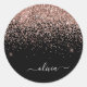 Rose Gold Glitzer Metal Monogram Glam Name Runder Aufkleber