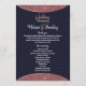 Elegante, schicke und moderne Imitats druckten Rose Gold Glitzer und Rose goldene Folie kreisförmigen Farbblock Ausschnitt auf Marineblau und Imitat Rose Gold Pinsel Skript-Text, Hochzeitsprogrammfans. Dieses klassische und raffinierte Design ist perfekt für das trendige und stilvolle Ehepaar. Personalisieren Sie Ihre eigene Nachricht auf der Vorderseite sowie ein individuelles Monogramm auf der Rückseite. Das gesamte Foto-Druckdesign.