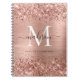 Rosa Rose Gold Glitzer Sparkle Pinselmetall Giral Script Monogram Notebook